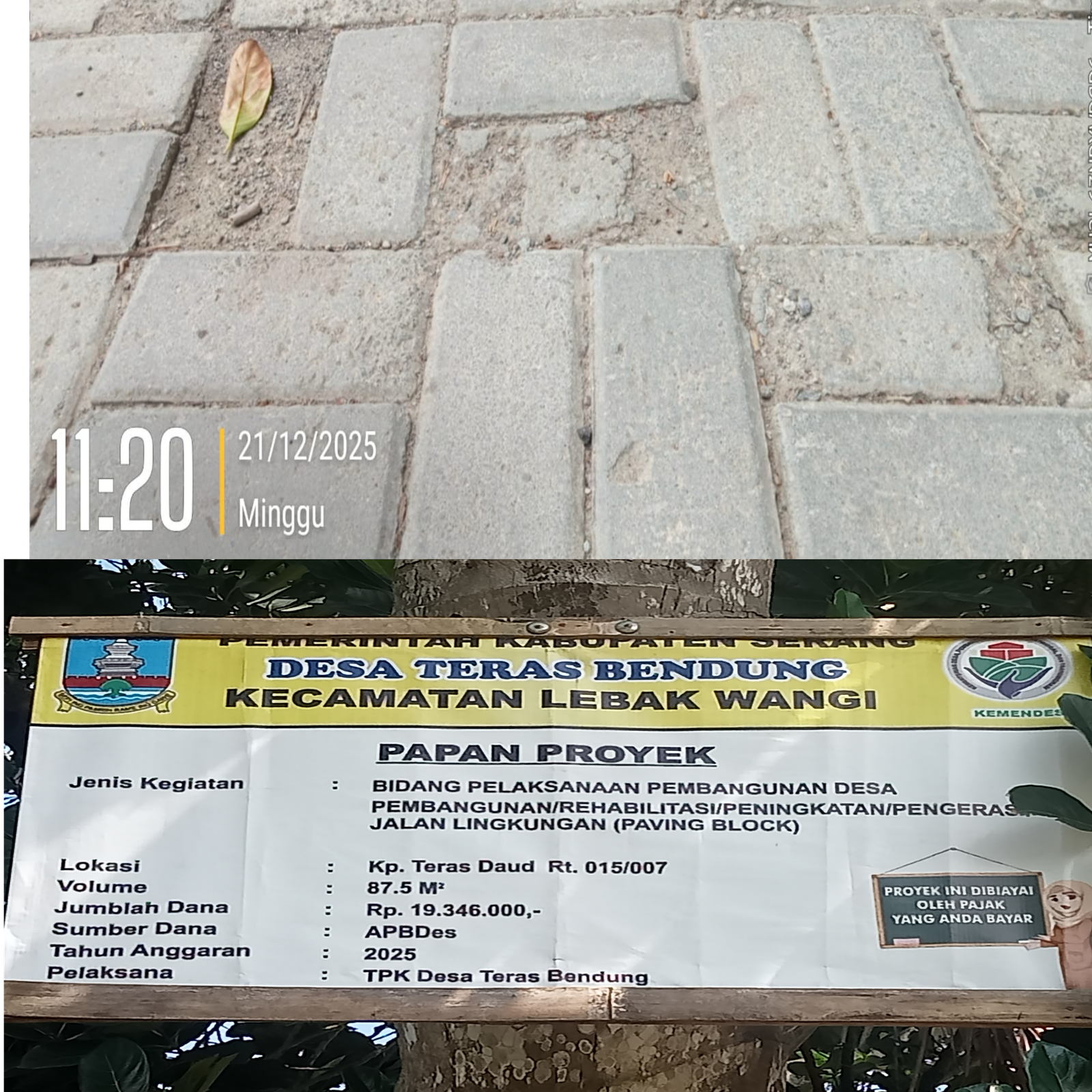 Serang, proyek pembangunan Paving block di desa teras bendung kecamatan Lebak wangi kabupaten Serang Banten,…